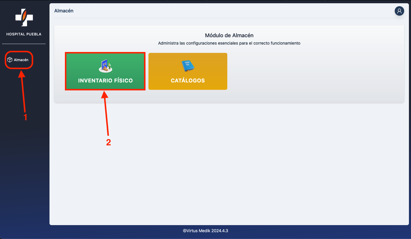 Lo primero que tiene que hacer el responsable encargado del inventario (supervisor) es después de conectarse al sistema es seleccionar el modulo Almacén, seguido de esto seleccionamos Inventario Físico, en el siguiente cuadro seleccionamos Planeación.