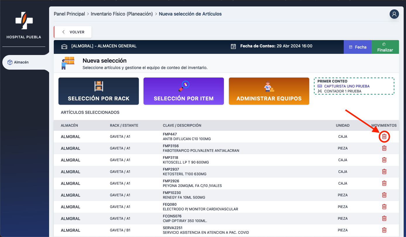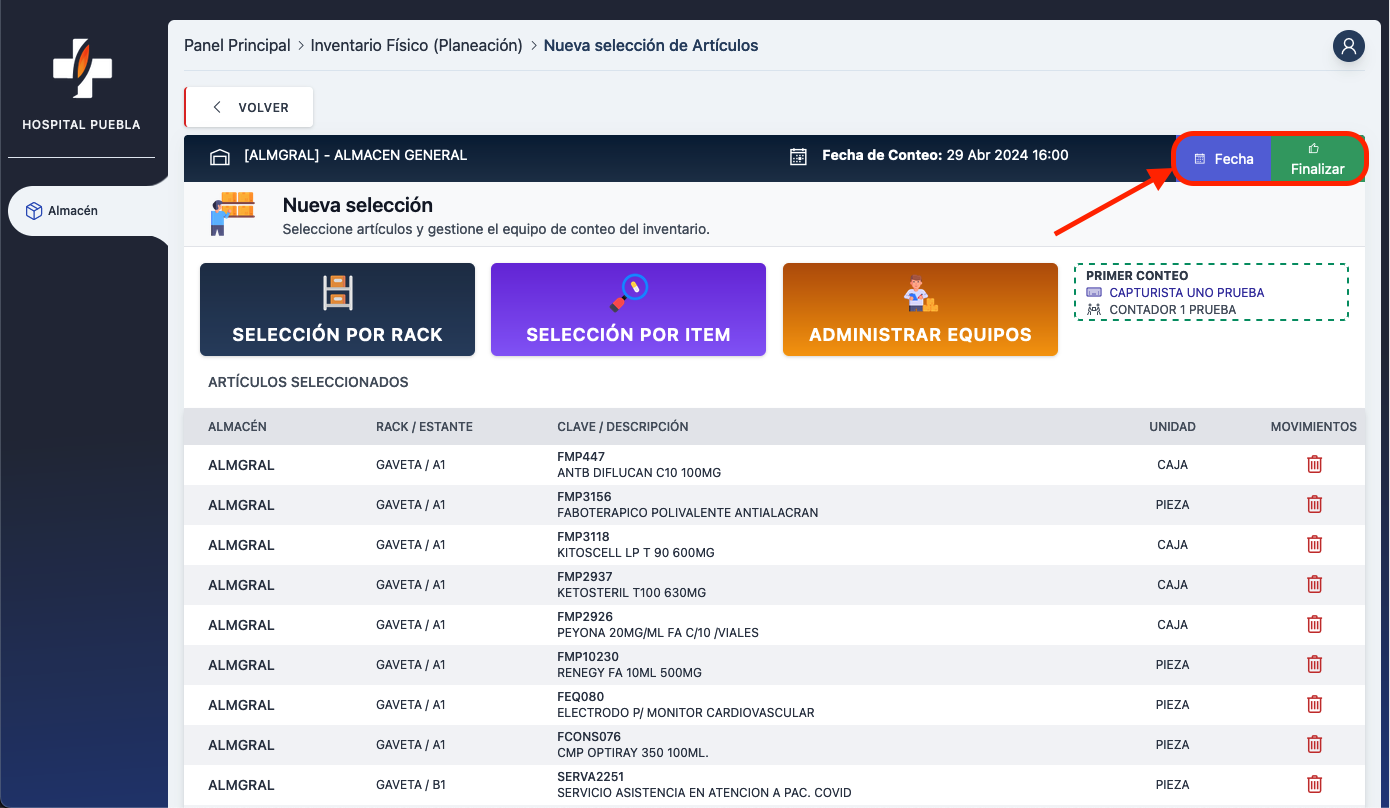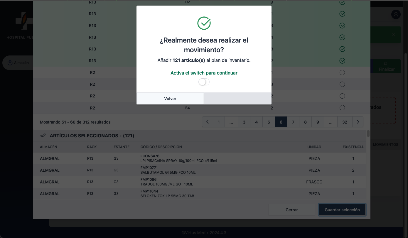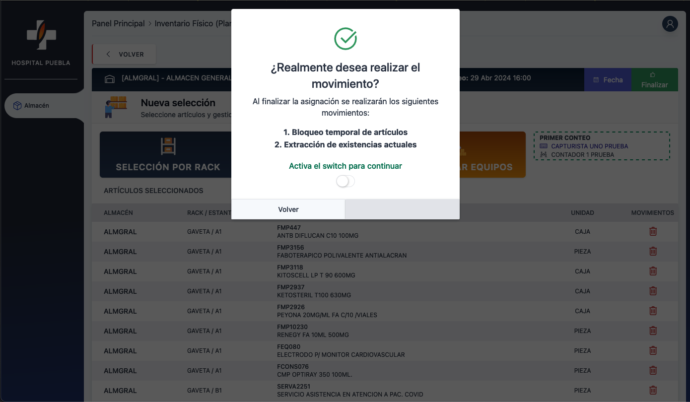 Ahora solo tenemos que confirmar que deseamos finalizar el movimiento y se bloqueen los artículos de manera temporal mientras se realiza el conteo.